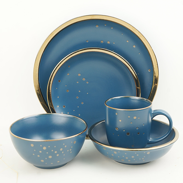 stoneware dinnerware set embossed metallic dots and metallic rim BH684