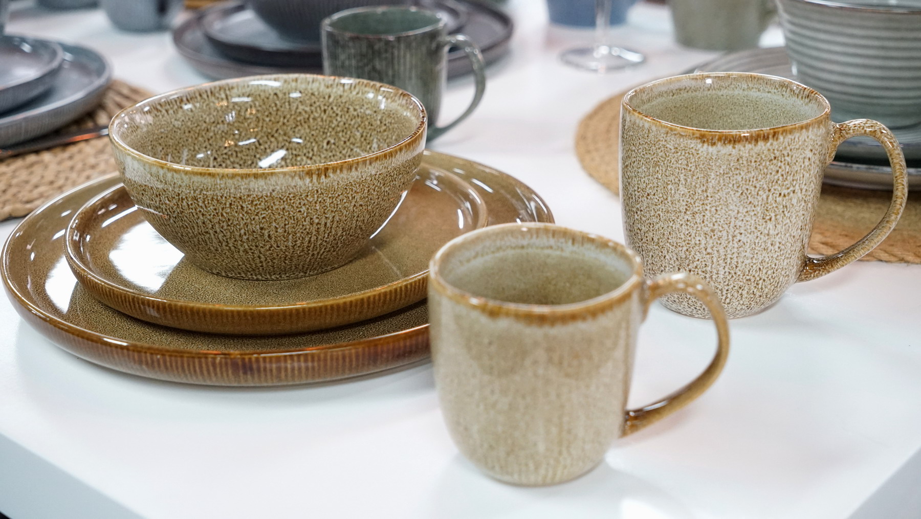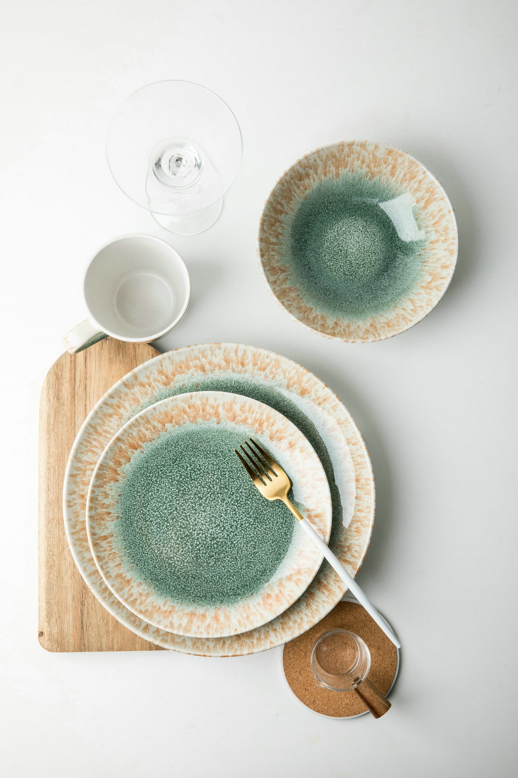 stoneware dinnerware set reactive glaze embossed lines LS123