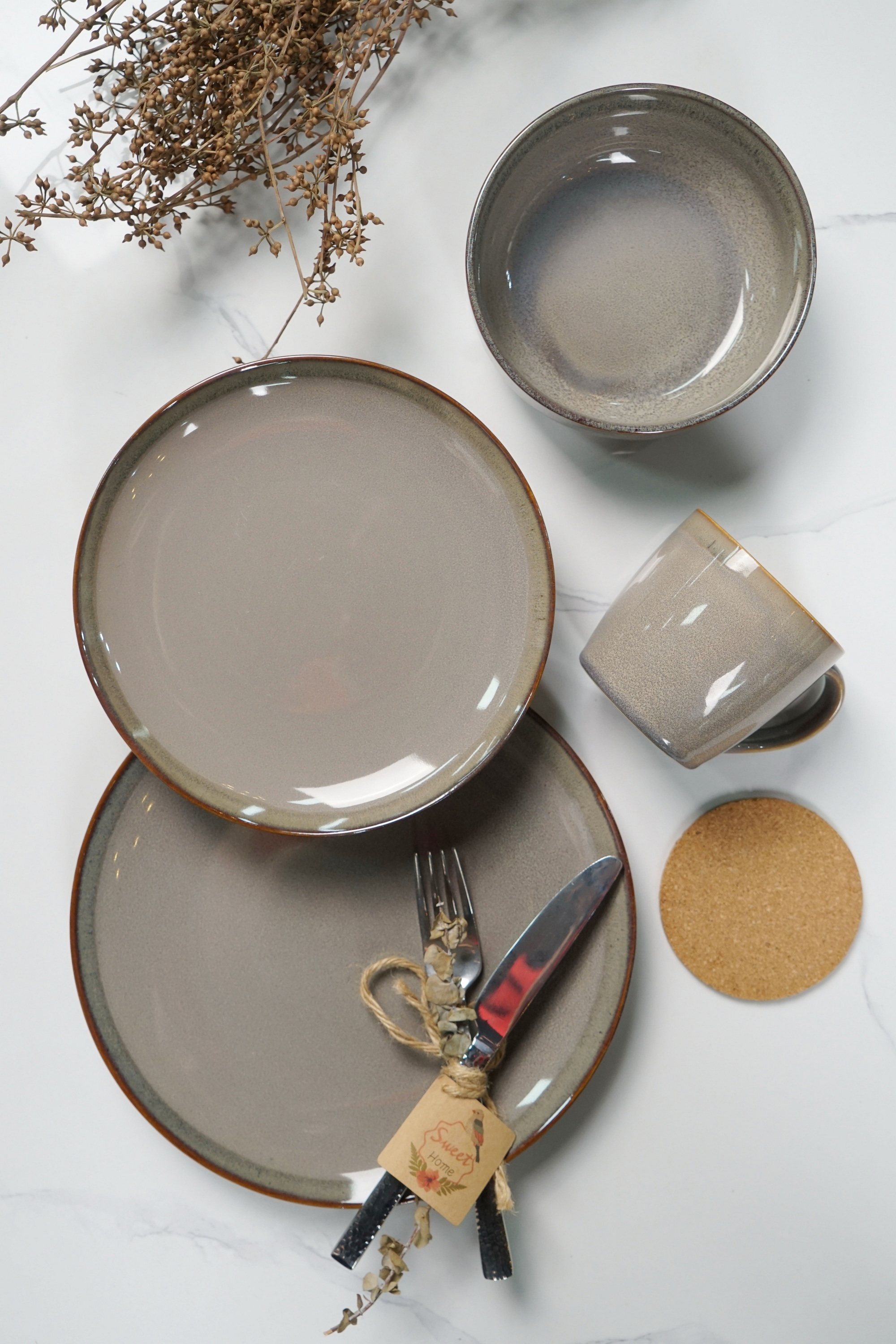Stoneware dinnerware set matte reactive glaze embossed lines YX076