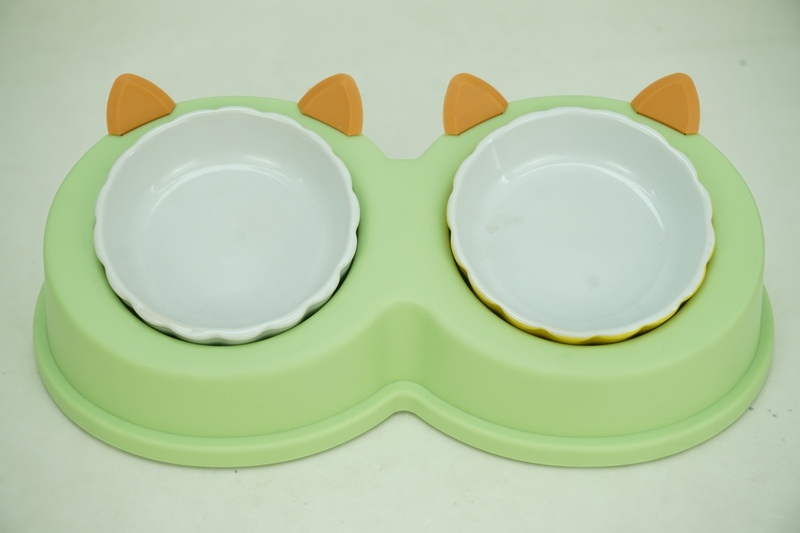 1x stoneware 350ml pet bowl with plastic holder and bottle PE9043