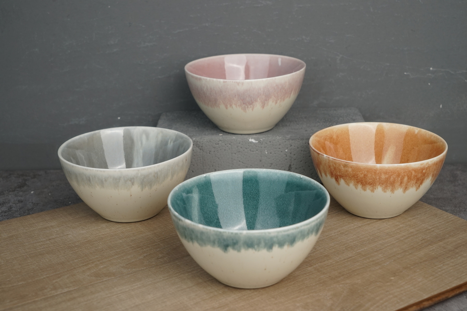 Stoneware bowl set reactive glaze BH